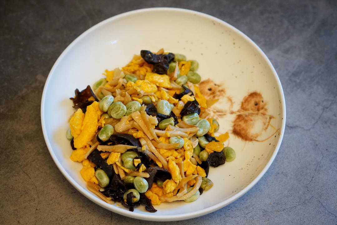 鸡汁豆瓣三鲜,嫩蚕豆没剥皮,这样的素我可以天天吃😋👍🏻。