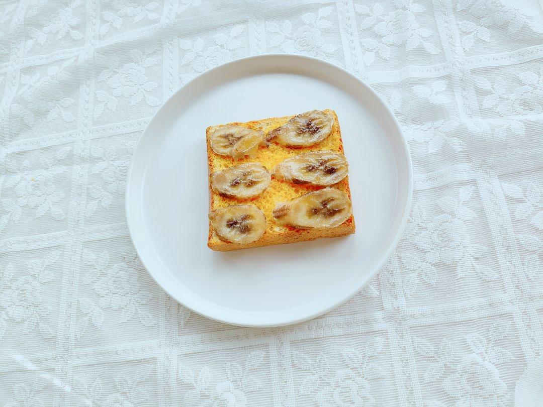 叮咚抢的香蕉熟了,正好消耗之前中筋粉做的咸吐司,口味很搭。用椰子油代替黄油,消耗存货。