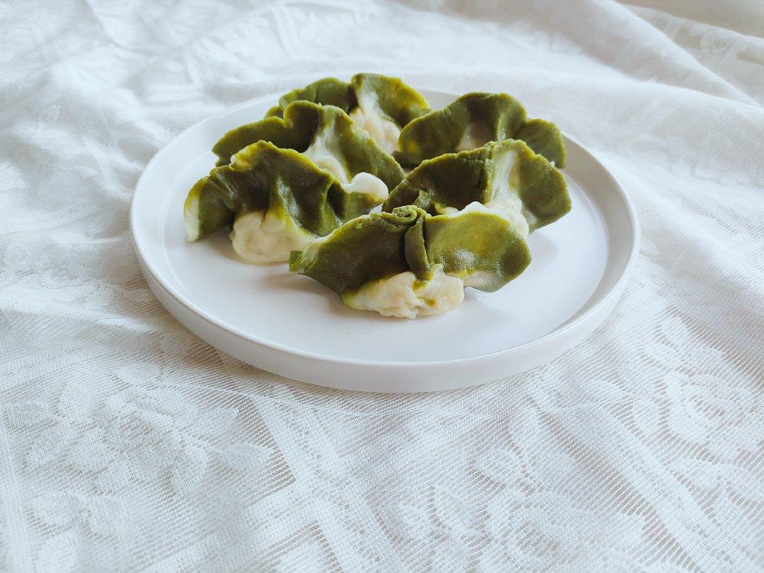 消耗叮咚抢的芹菜以及肉糜,用菠菜粉调的颜色,不够翠绿。看了好几遍还是不会捏饺子😤