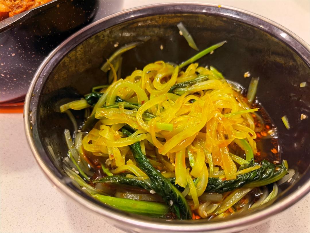 晚餐~拌菠菜,几块清炖牛肉,一颗水煮蛋😀