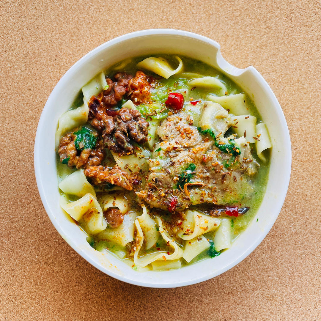 仿日本味增拉面的方子不po了 味道一般吧 主要就是牛奶白味增。羊排代替猪叉烧。一开始还是很奶白色的—毕竟是牛...