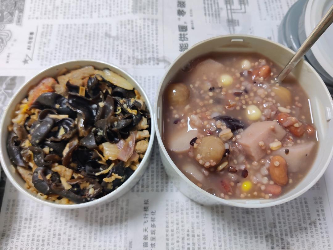 ♥杂粮粥+番茄炒木耳黄花菜