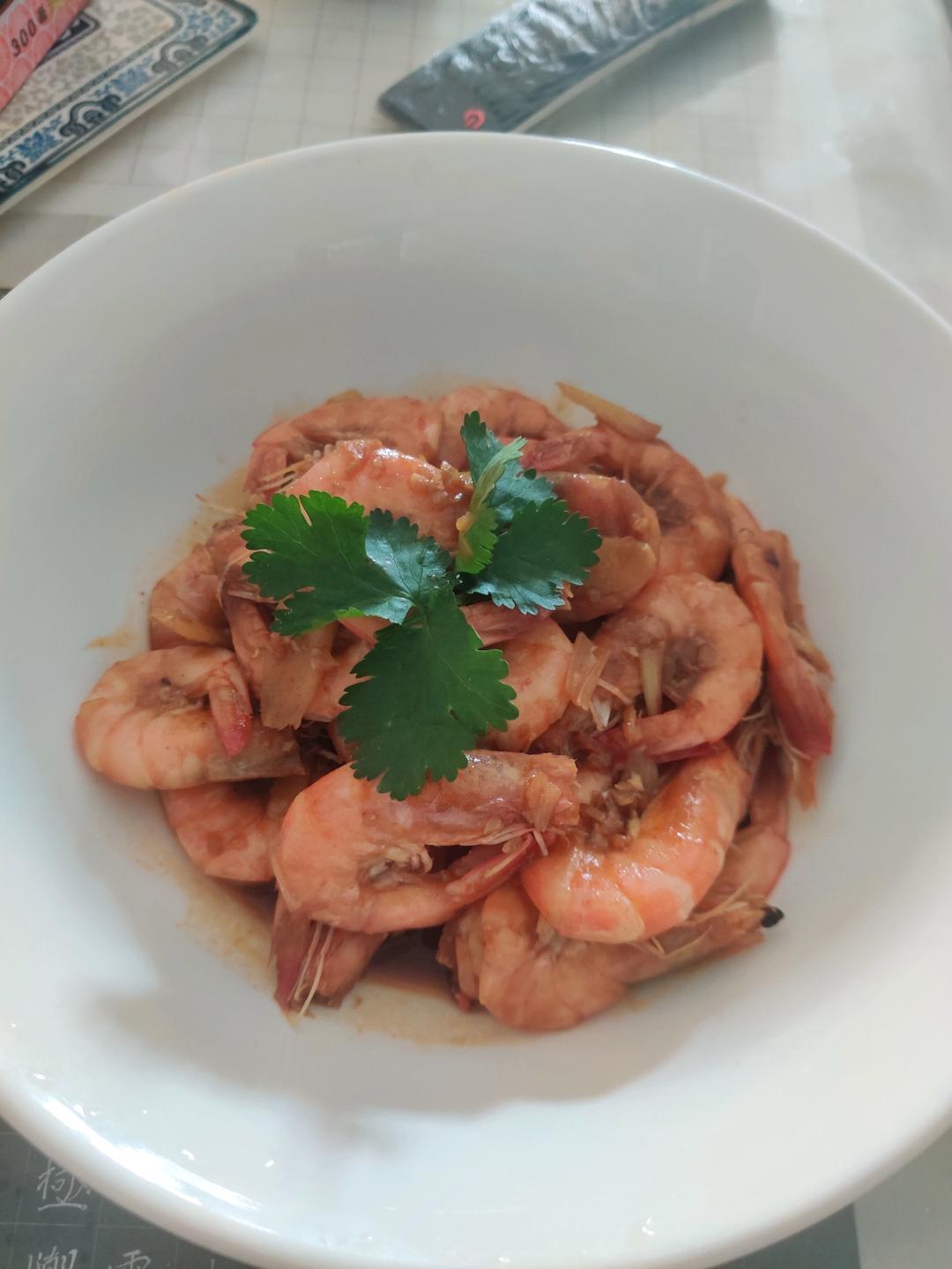 卤牛肉,白灼虾,蒜蓉西兰花,枸杞叶瘦肉汤,鸡蛋炒西红柿