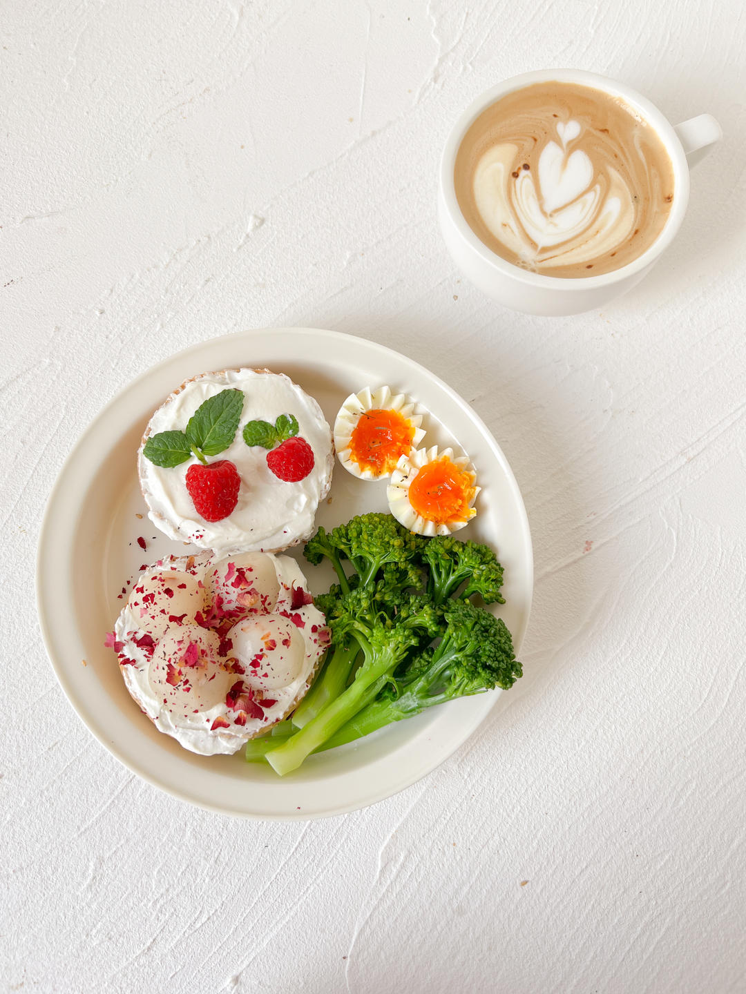 彩椒芝士蒸蛋|多谷物欧包|拿铁