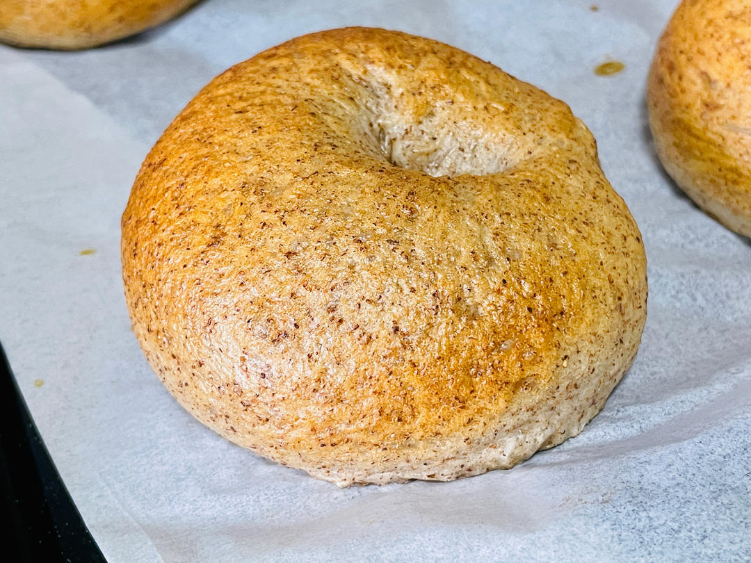 的配方和步骤操作,全麦无油真的是越嚼越香,整形有待提高,中间的小孔胖得快不见了😅