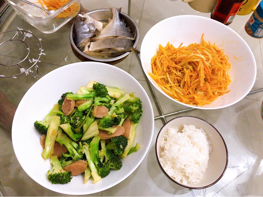 今晚饭菜不错,我都想装多半碗饭了,我弟吃了三碗😂想想平时饭菜不合他胃口,就只吃一碗了