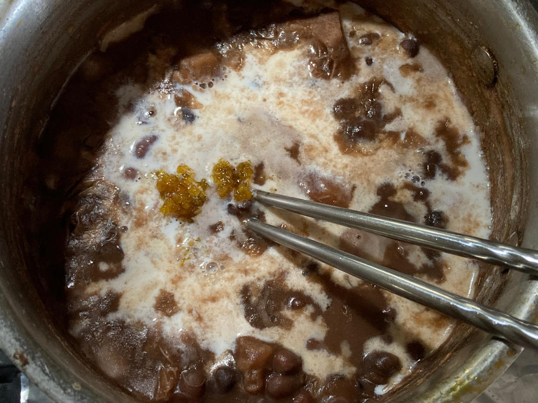 虽然王刚师傅说了糖桂花要放24h后才好吃,但我还是用了一点😆锅是做糖桂花的锅,直接用来煮红豆...