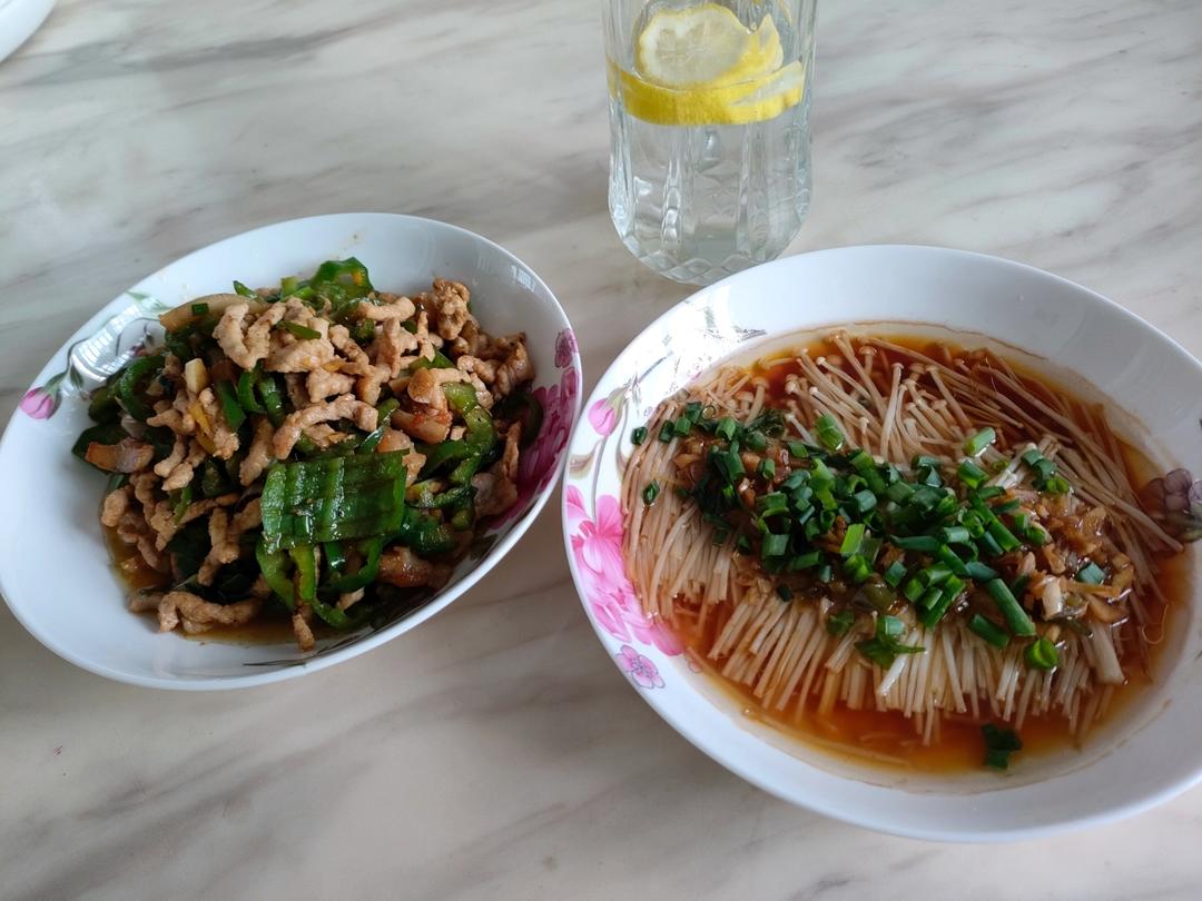 蒜蓉金针菇非常好吃,青椒炒肉经典菜系