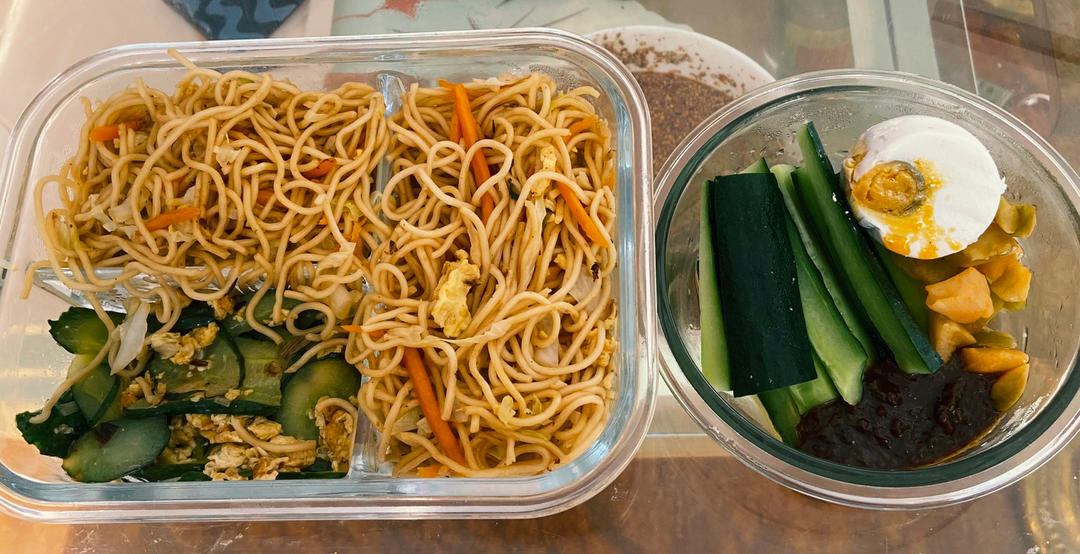 第一天 炒面 黄瓜炒鸡蛋 凉菜
