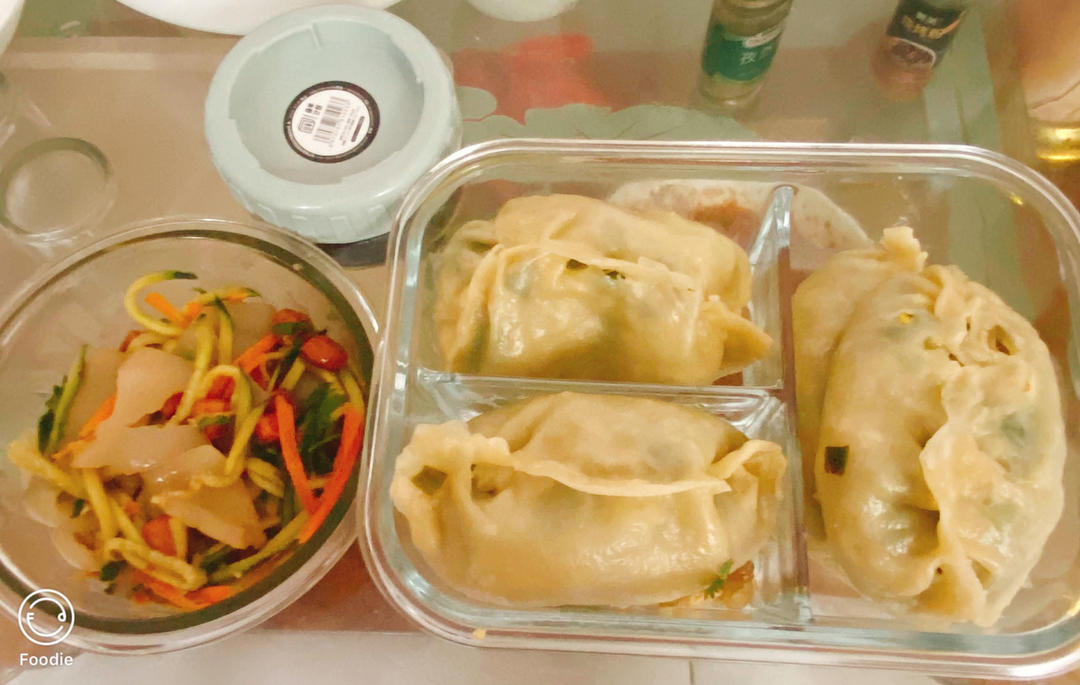蒸饺 凉拌拉皮 醋 炒合菜(在下面呢)