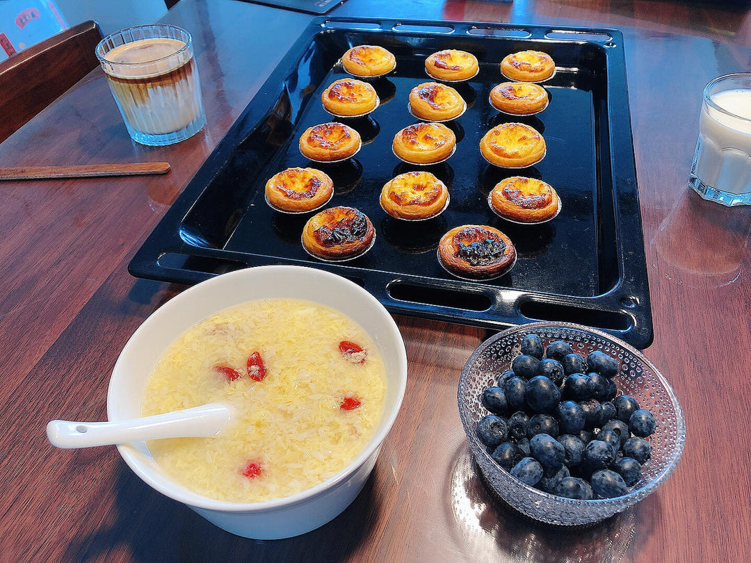 今天一整天都头昏脑胀的,还好爸妈来支援,但早上核酸大筛,还是爬起来烤了蛋挞,煮了酒酿年糕