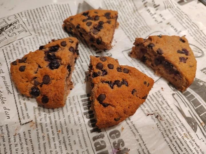 全麦香蕉巧克力司康。全麦粉替换高筋粉,没有鸡蛋了,用了80g淡奶油,25g巧克力+25g...