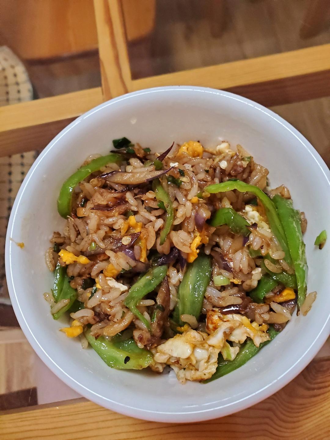 在办公室吃的午饭,青椒炒蛋、小肉圆、丝瓜炖豆腐。