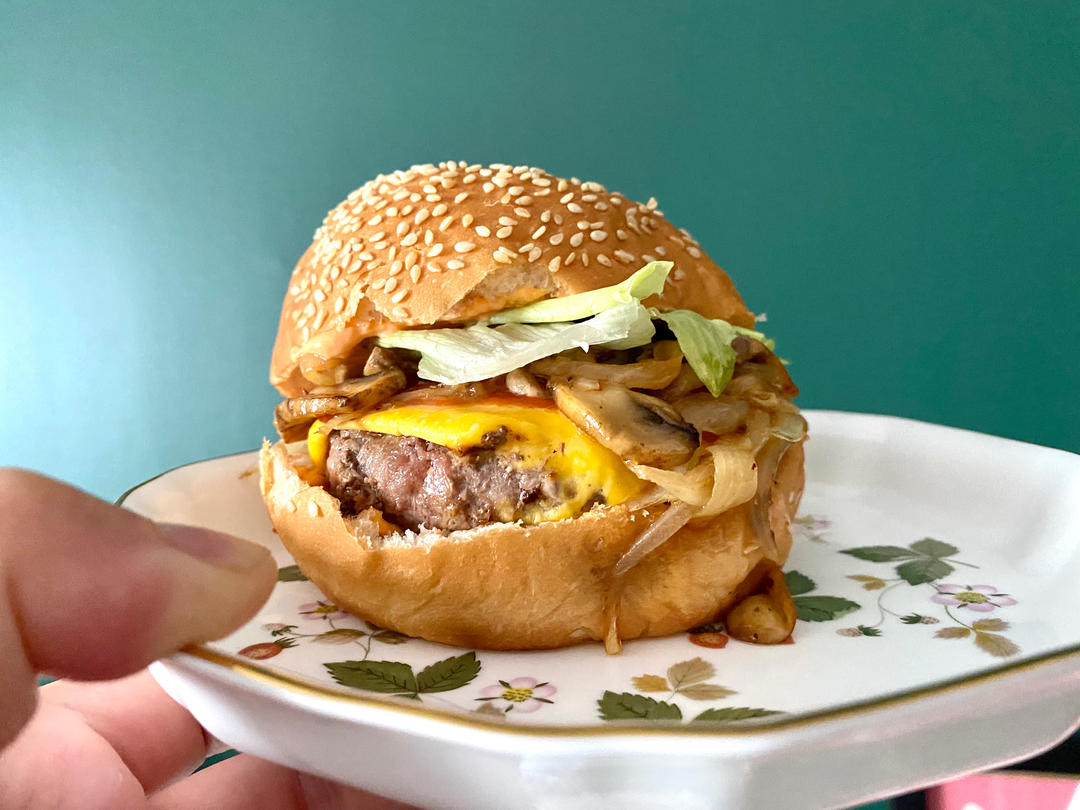 加了煎口蘑 洋葱 芝士酱和生菜