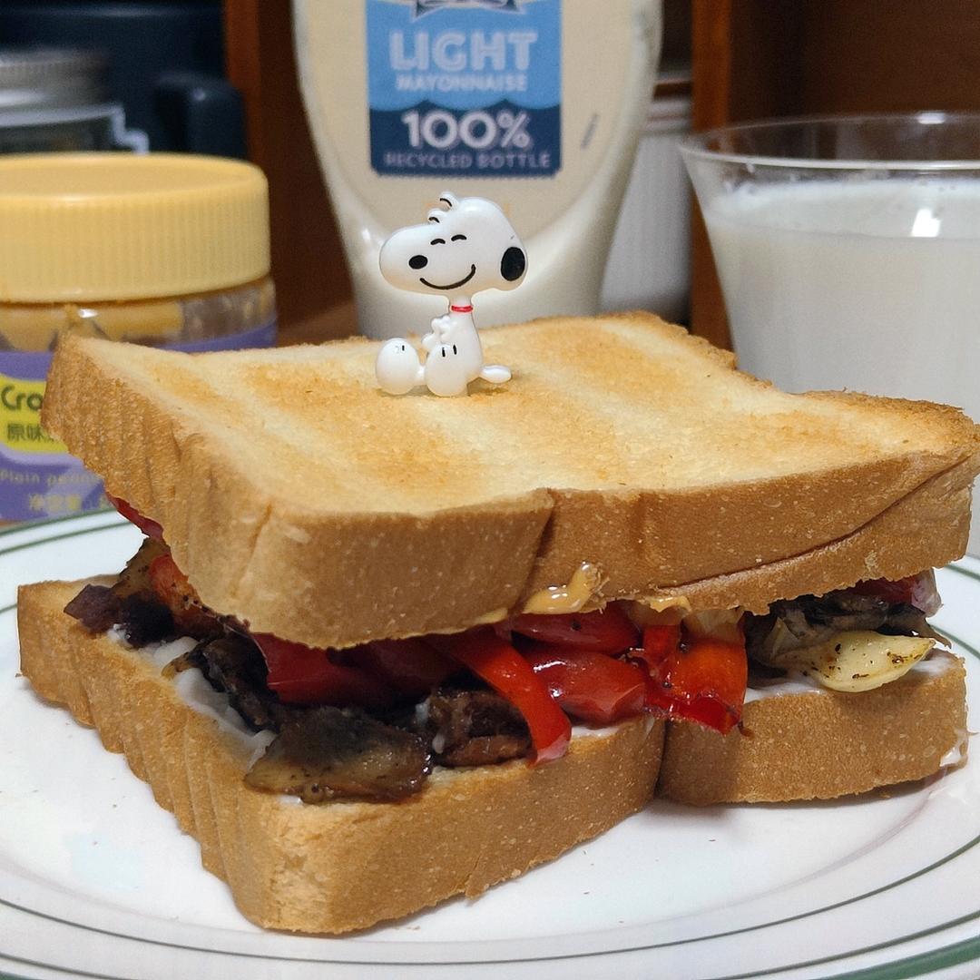 今日朝食:烤彩椒香肠吐司卷🫑