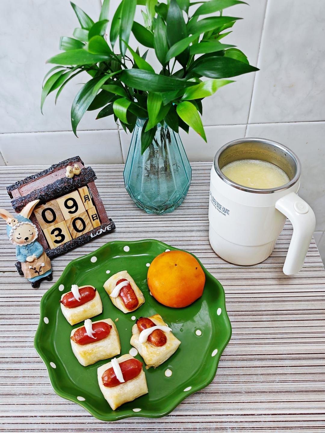 9.30早餐日记:香肠小卷+山药玉米糊+脆柿子