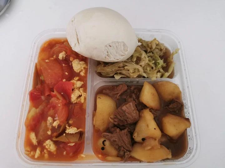 中午跟同事出去按摩背,回来吃的食堂打回来的盒饭。 还有昨天的午饭也是从食堂打回来,一点多才...