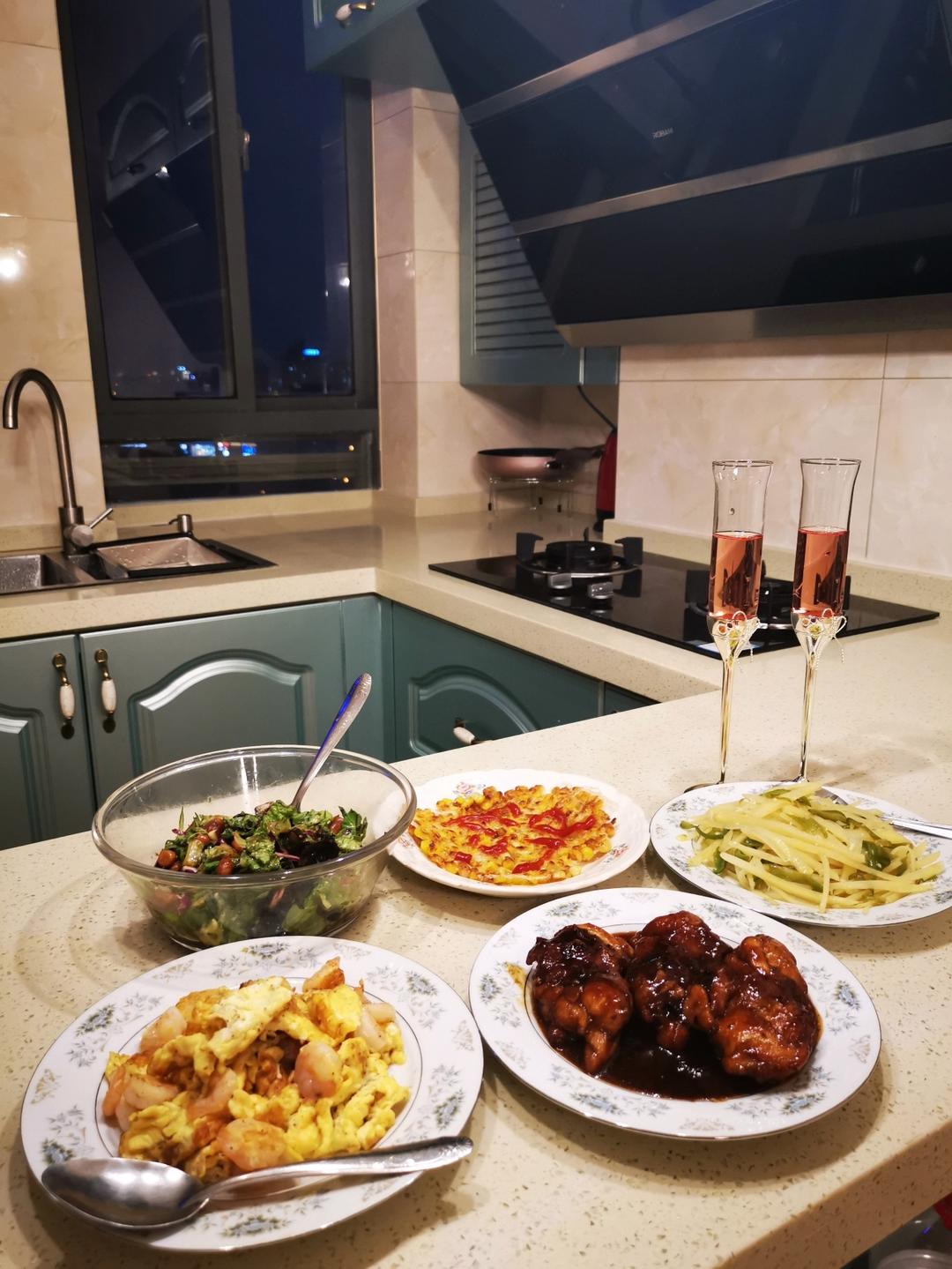 结婚纪念日的烛光晚餐在新家里度过