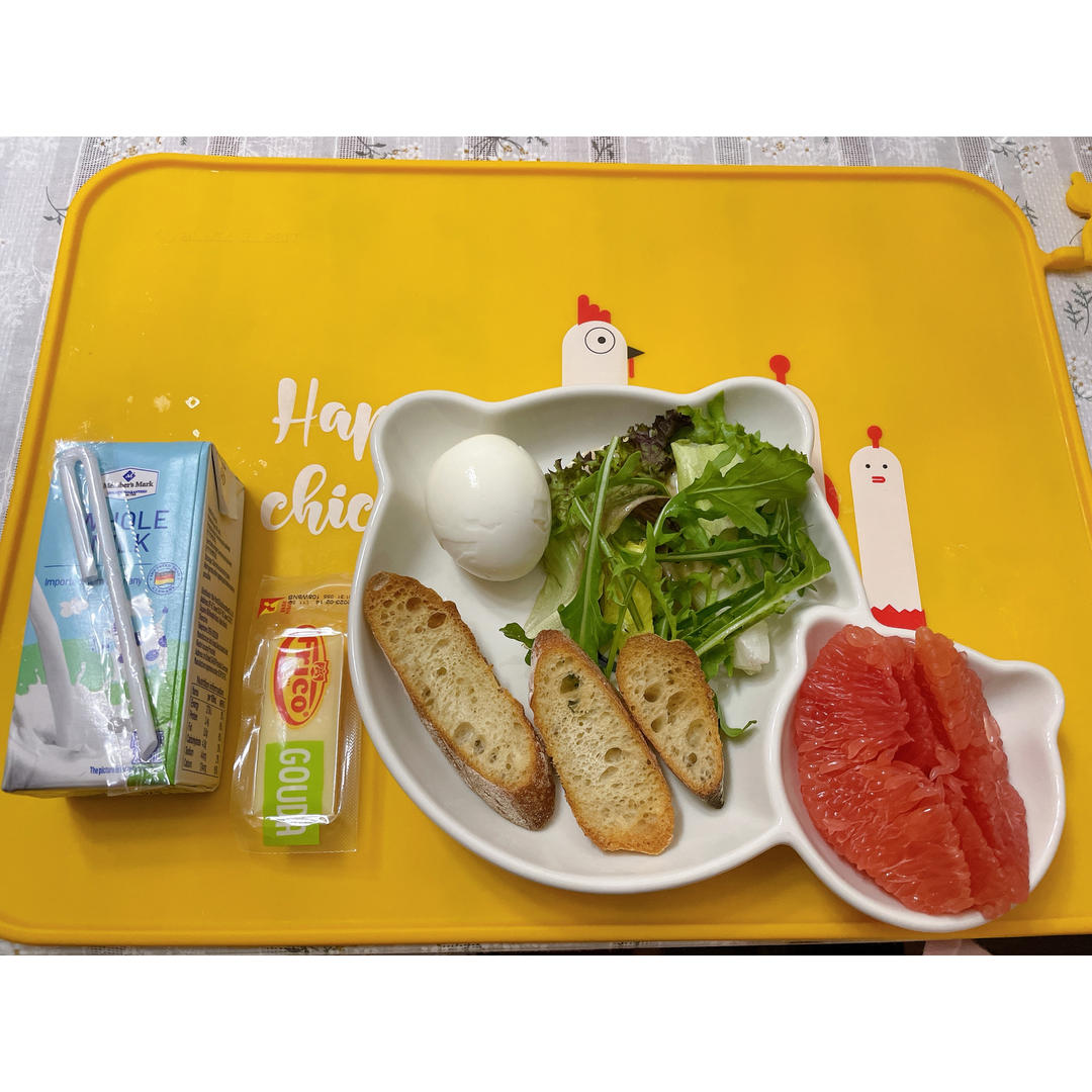 早餐 烤法棍 白煮蛋 蔬菜沙拉 奶酪🧀