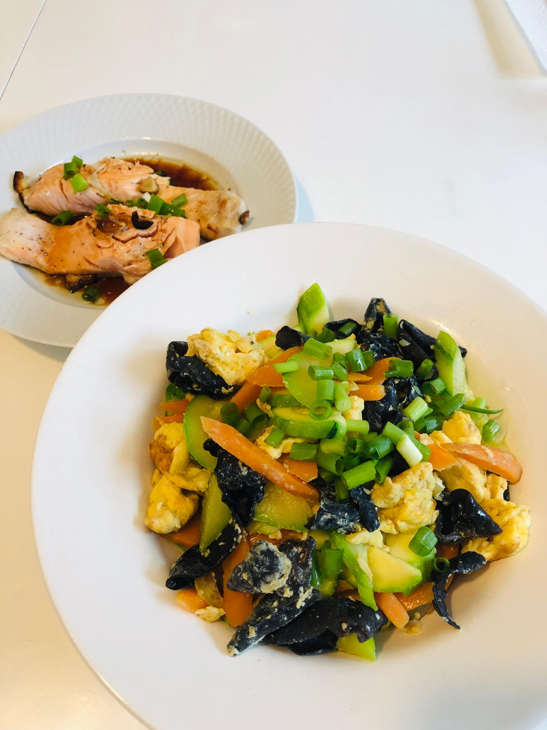 * 整整一大盘的木耳西葫芦炒鸡蛋,清淡健康...