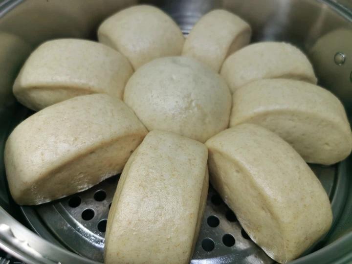 第二锅馒头出炉。120全麦粉,380中粉,10油,3盐,5酵母,250水。