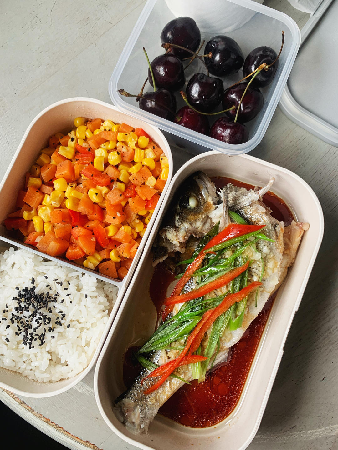 蒸鱼~玉米胡萝卜红椒