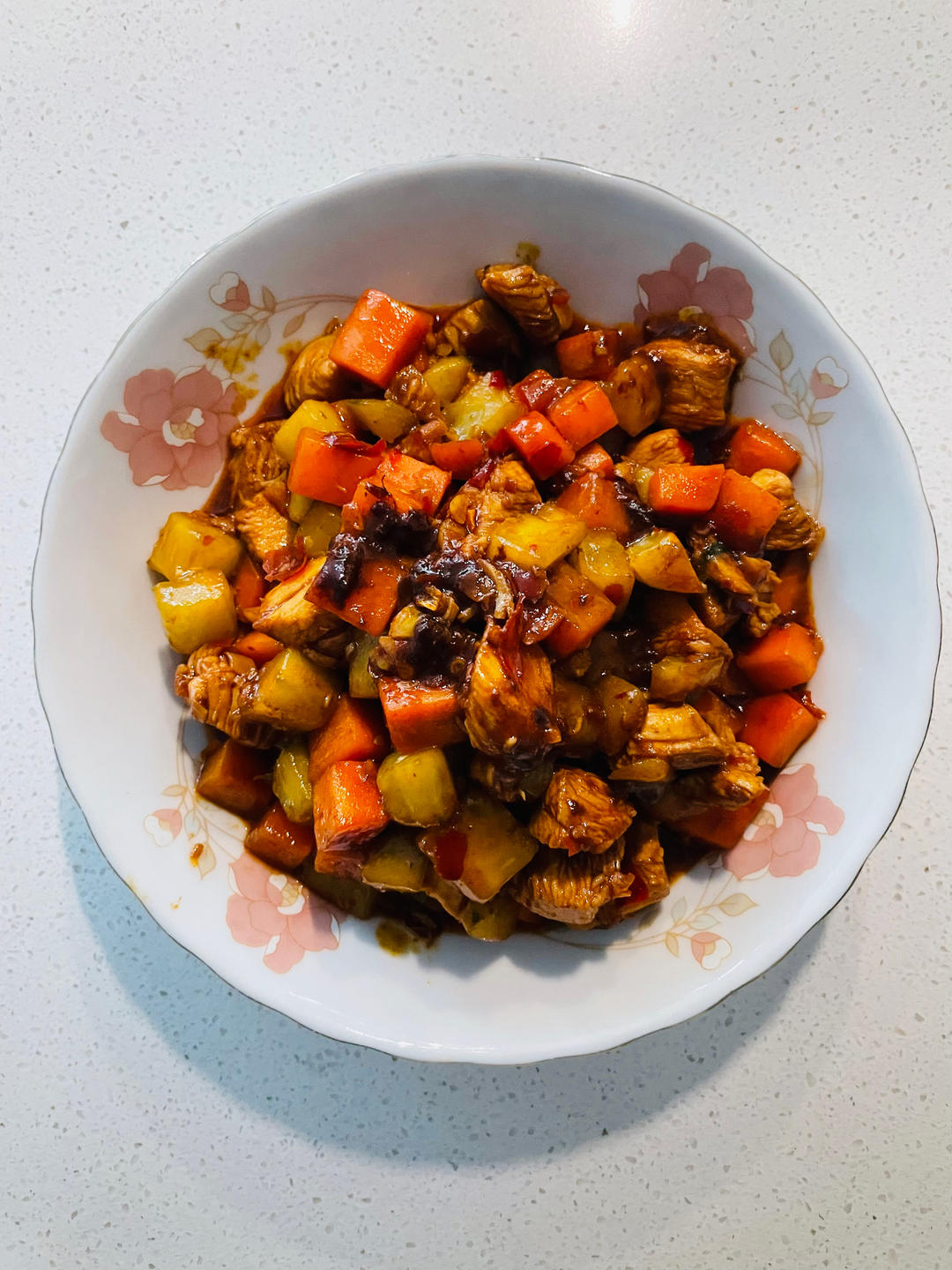 第二次做了,两个小时煲了一大只老母鸡,先焯水去农残,加了几只香菇和胡萝卜,鸡油都去掉了,正好煮出来一点点油营养又健康
