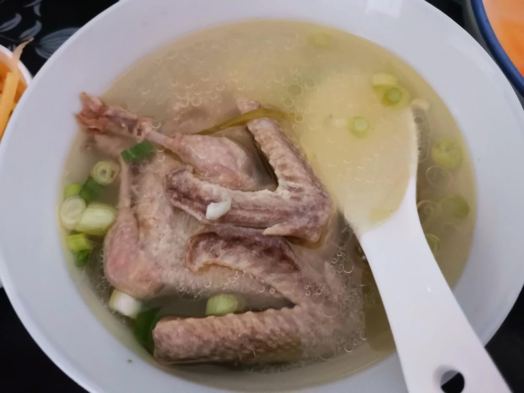 鸽子汤,木瓜小米粥,炒土豆丝,虾仁木耳