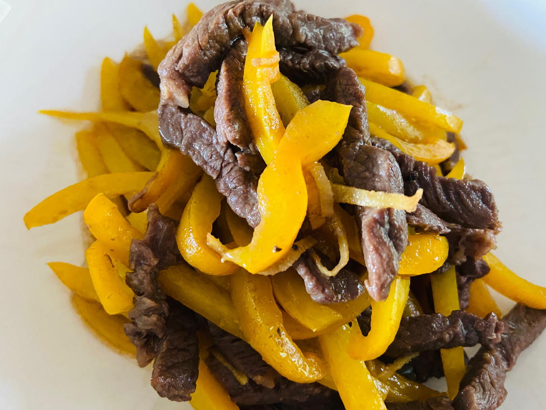 彩椒牛肉條,水煮架豆。按說配米飯應該乾煸架豆才對路,可惜了。