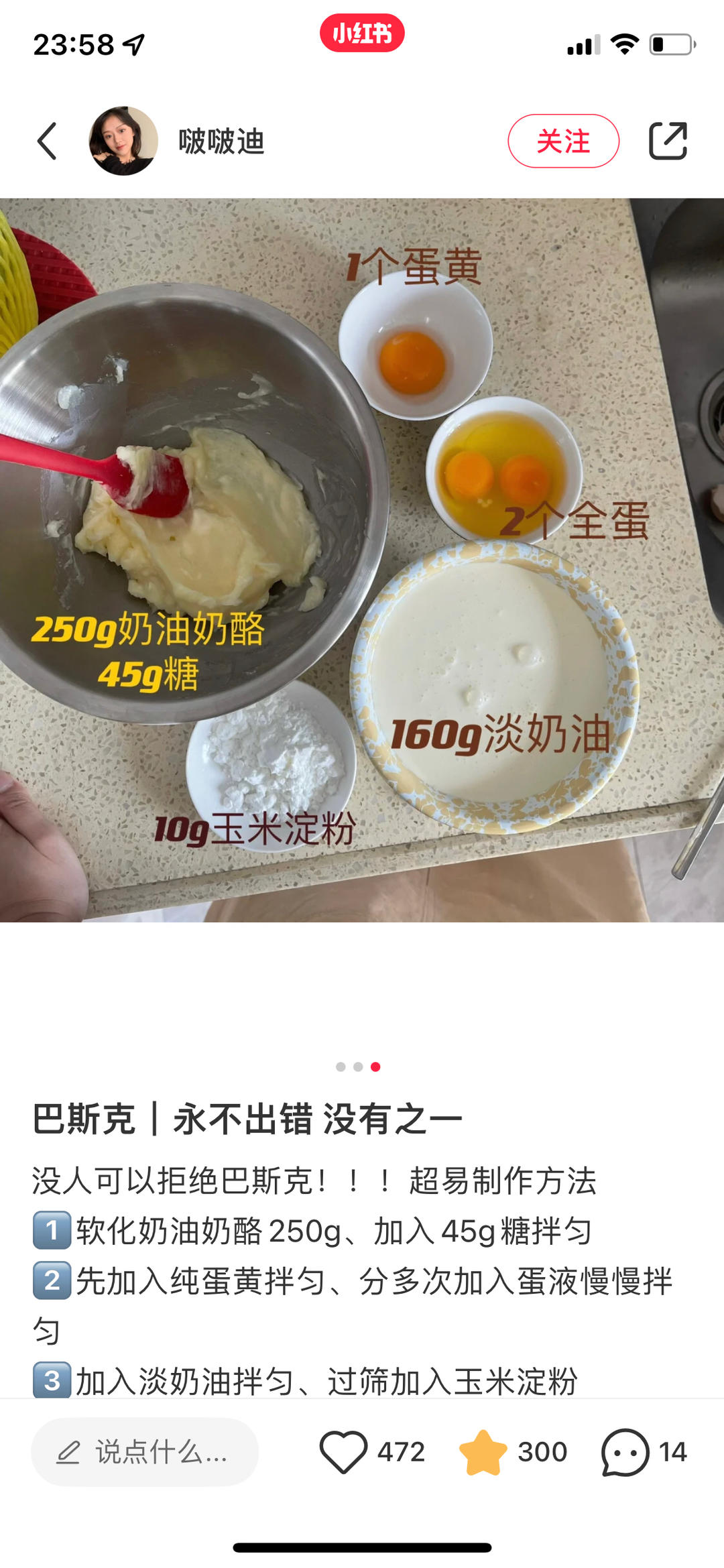用了300g奶酪 其他都不变 做出来非常好吃 冷藏一晚上味道比较好 刚拿出来感觉没熟
