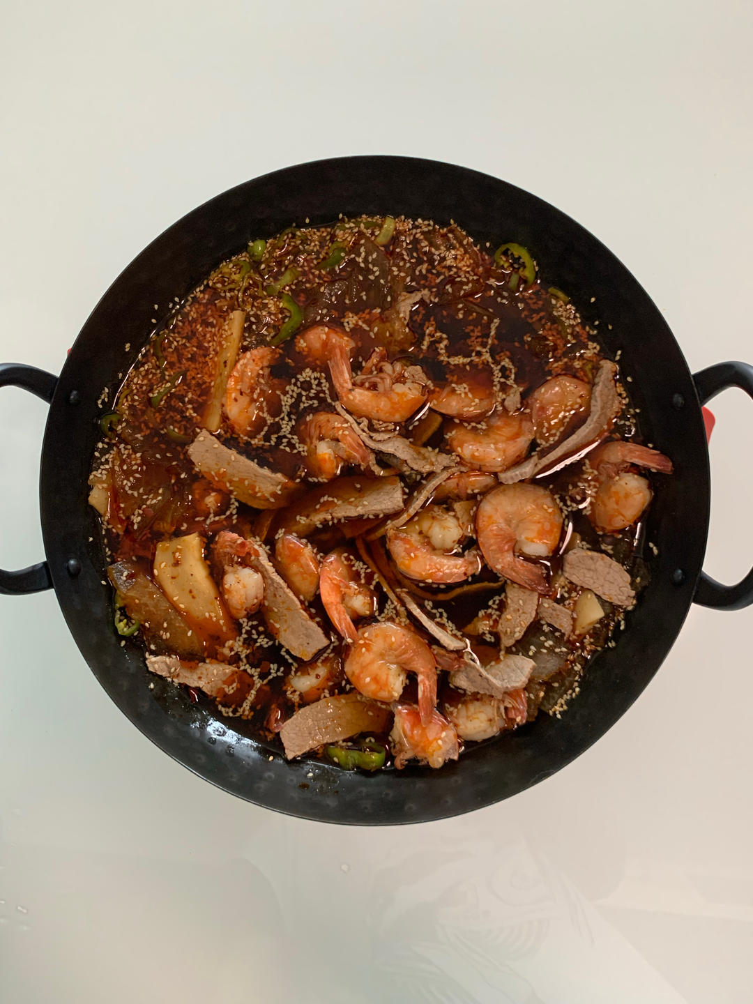 这次放了虾 牛肉片 冬瓜 杏鲍菇