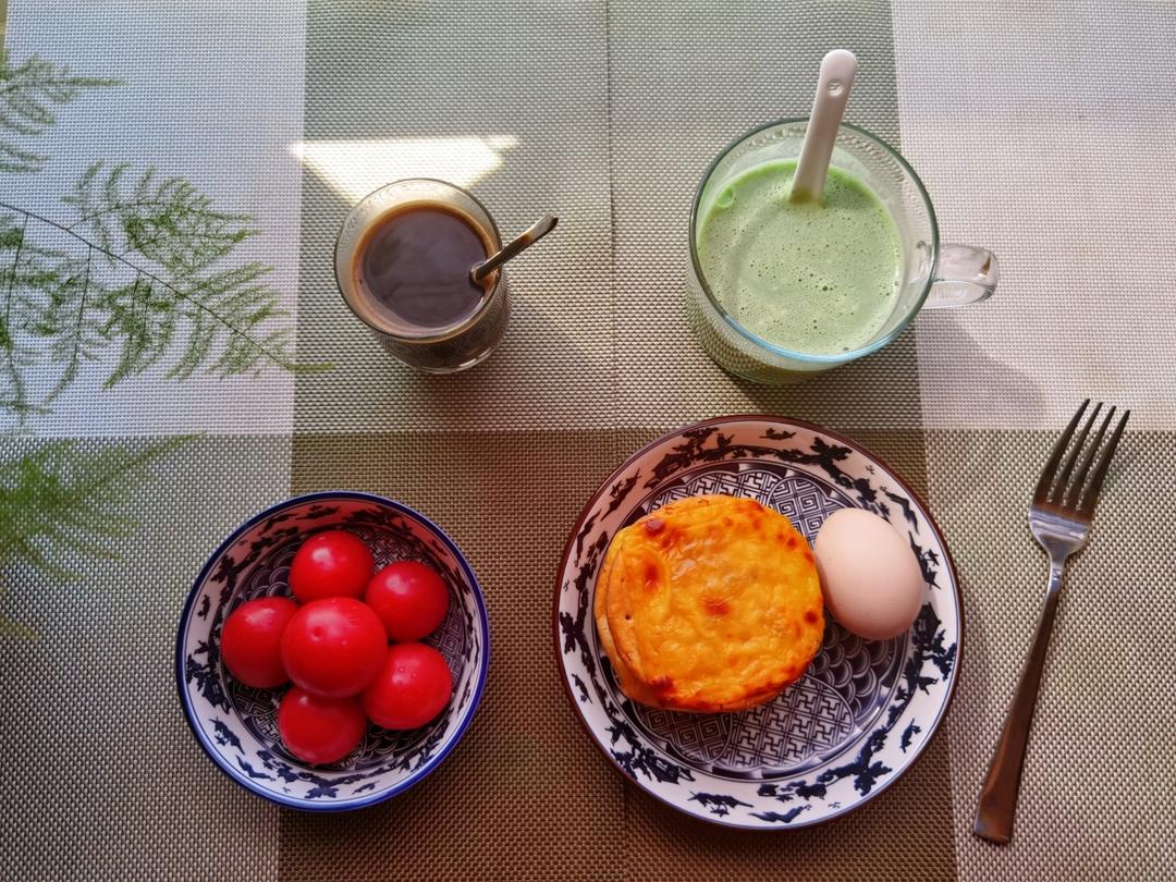 【早餐心语·减脂打卡D115】储备一些食材是对付困境的最好手段之一。现烤芝士玉米饼、鸡蛋、羽衣甘蓝无糖豆浆、黑咖啡、圣女...
