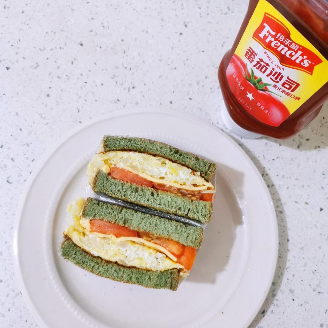 三明治啊,包菜蛋饼三明治,番茄酱的加入是神来之笔,妥妥的减脂餐