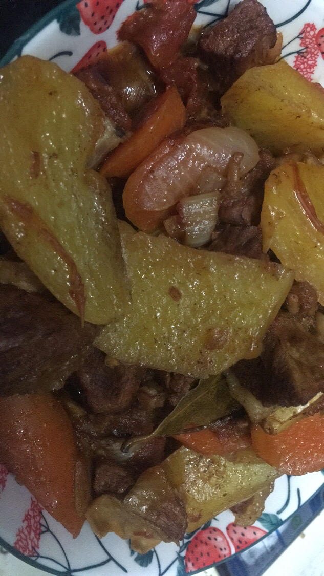 没有滤镜,土豆比胡萝卜好吃,因为喜欢干一些的所以收汁比较多