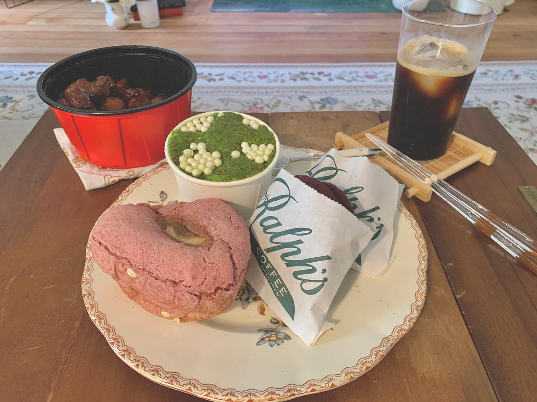 包子➕豆奶。豆奶加了一丢椰子粉,不好...