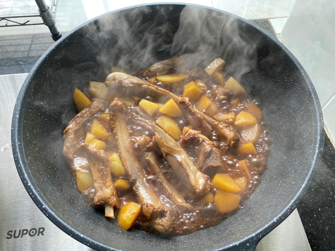 鸡翅根换成猪肋排依然出色,无滤镜,应该是老抽放多了,煮出来还挺好看,咸淡刚好。