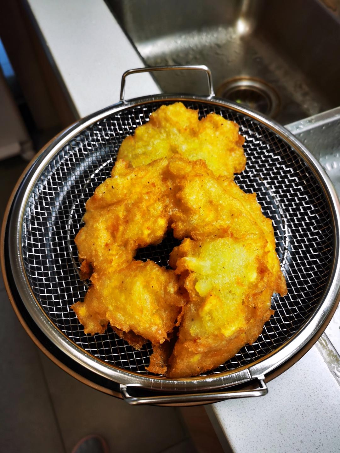 终于用了次炸面窝的勺子来炸土豆饼,被好评