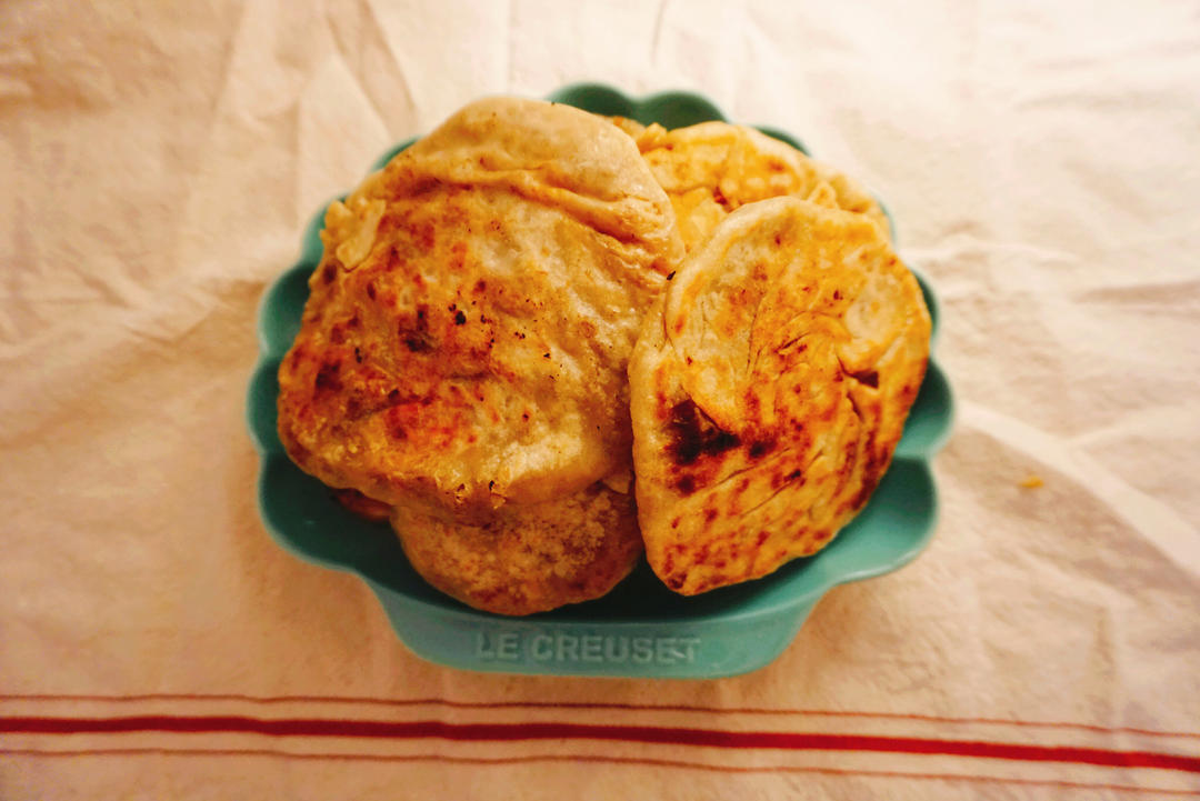 要遵循步骤:涂油-包馅料-隔夜-擀平