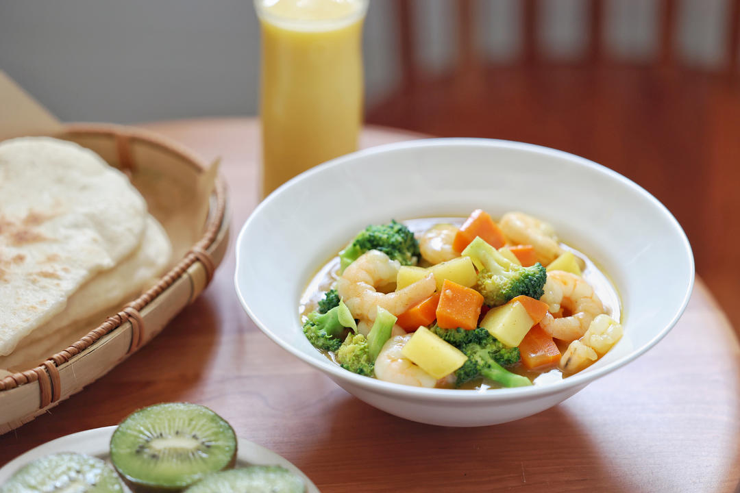 咖喱虾仁泡烤饼