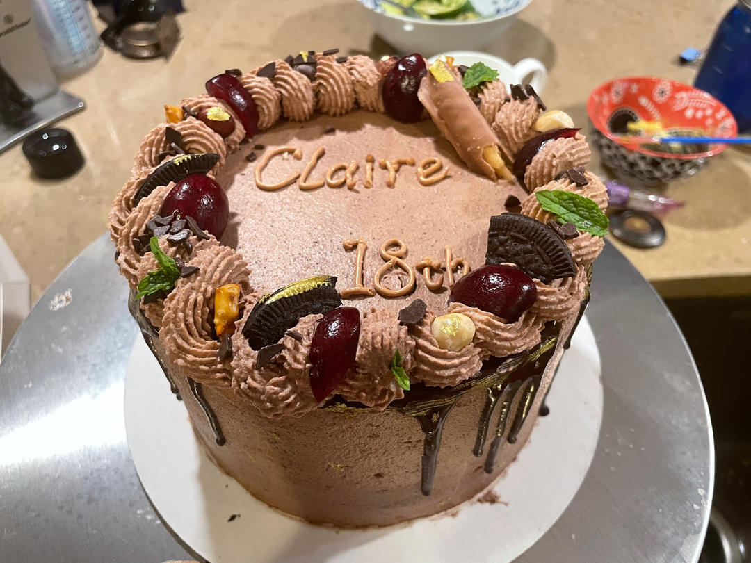 做了两个6寸可可戚风,每个可切4片1.5cm蛋糕片。
