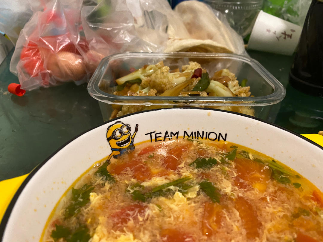午:🍲青菜鱼丸汤+香肠+时蔬...