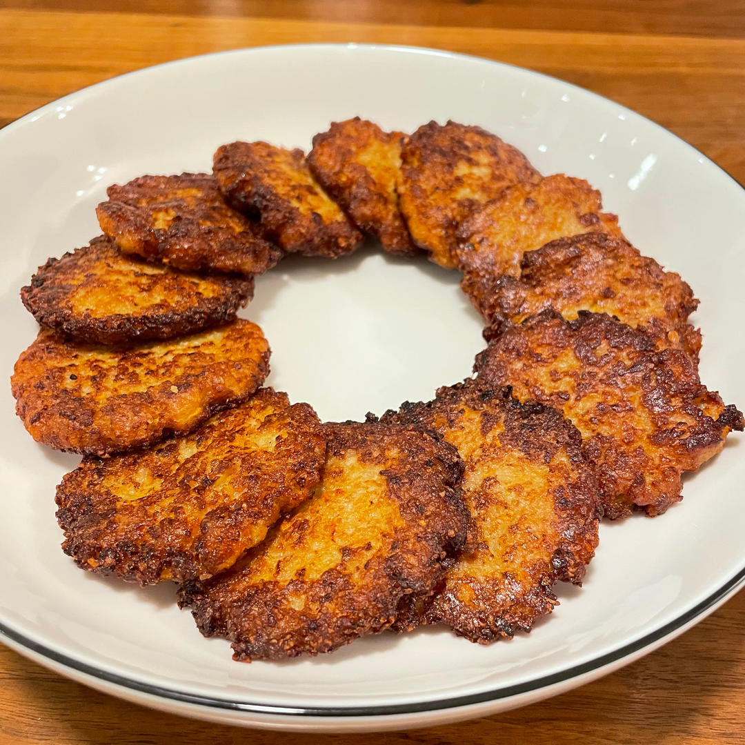 加了胡萝卜和洋葱丁,外面特地煎焦了一点,里面有软嫩的肉和脆脆的藕沫,好吃!其实还做了一碗,吃不完先冻起来,下次吃复炸一下...