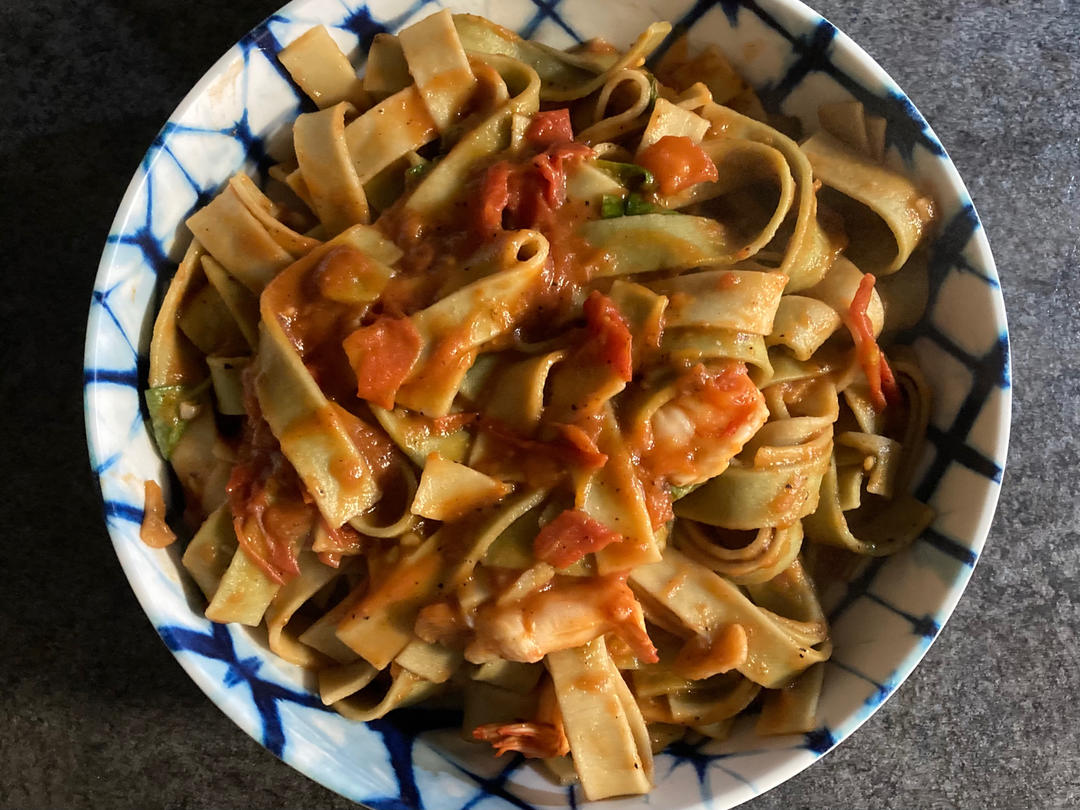 罗勒番茄大虾意面