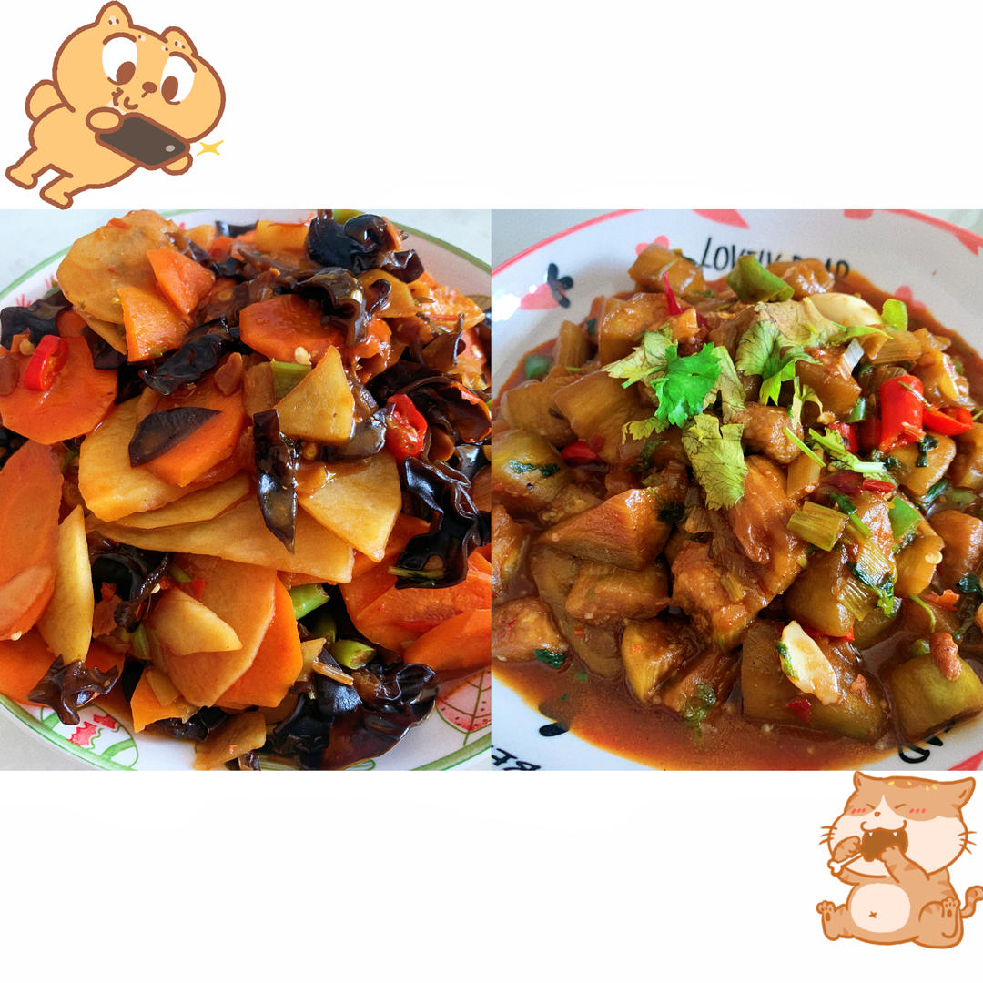 土豆炒胡萝卜-烧茄子