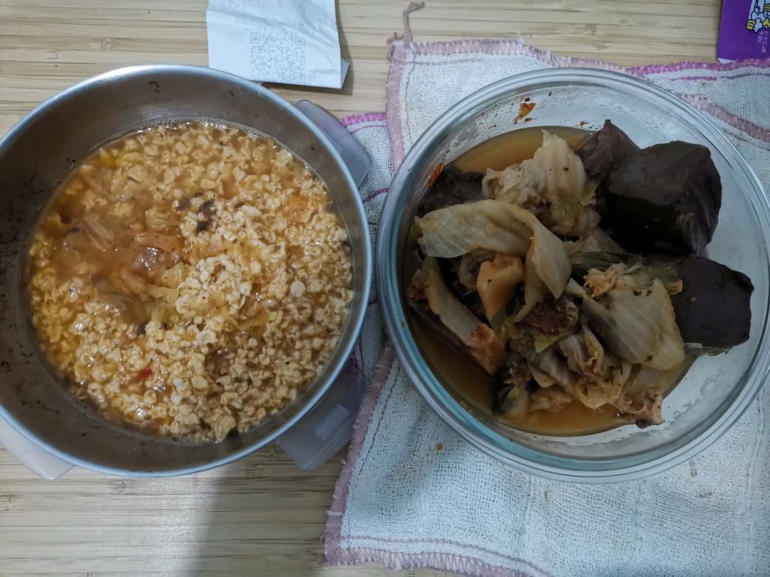 泡菜煮鸭血,燕麦片