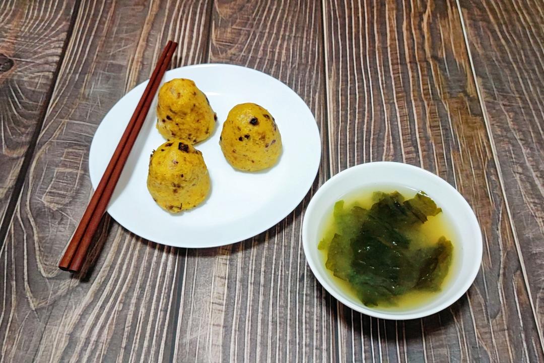 plus版栗子面窝头+味噌汤