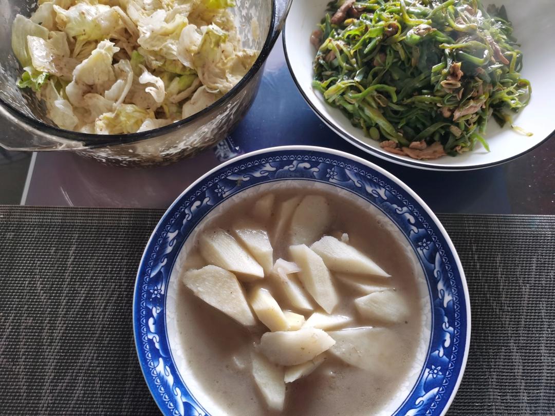 毛豆虾仁 菌菇煎蛋蔬菜汤