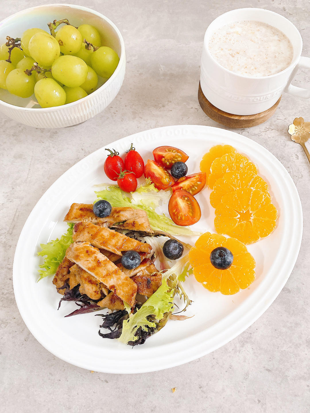 香煎鸡胸肉➕水果、蔬菜➕牛奶麦片🥛
