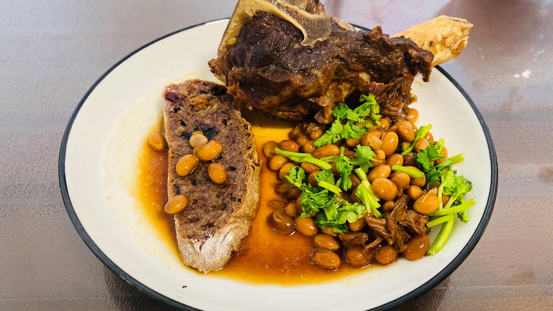牛骨花生配黑米欧包