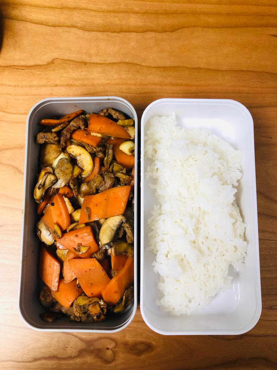明日中午便当🍱肉片抓进去好些生抽、小小盐、淀粉、黑胡椒粉、包一层油等水分;半根胡萝卜、...